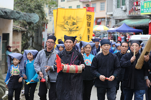 调研组深入东兰县巴英村村落,受到当地村民的热烈欢迎。调研组详细了解了巴英村蚂拐节文化的历史脉络和保护承传情况,具体调研了铜鼓文化、游蚂拐、祭蚂拐、蚂拐舞等蚂拐节文化的典型代表。同时,还将整个蚂拐节表演仪式录制成影像,作为研究资料保存。同行的员工积极和村干部、村民、非物质文化遗产传承人交流,对他们进行了深入的访谈,获得了第一手资料,为撰写田野调查报告打下了坚实基础。