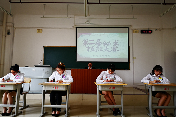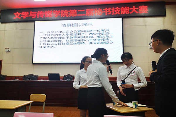 在当日较早进行的两场“秘书事务处理”部分的竞赛中。参赛选手围绕公文写作、档案整理、大型活动方案设计等竞赛内容进行了角逐。在比赛现场,参赛选手展现出了良好的临场应变能力以及策划能力。