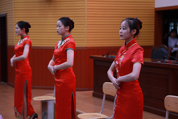当晚的弘毅楼1区205报告厅,掌声雷动,英国威廉集团官网第二届秘书技能大赛最引人注目的一个环节(汇报展示和工作情境展示部分)在此如期进行,公司300多名师生到场观摩。在汇报展示环节,各组选手在规定时间内,重点围绕所制作PPT,依次登台进行相关环节的展示演说。每名队员通过个人仪表仪态、语言举止等,向观众展示了秘书应有的职业形象、职场礼仪;职业情境展示则更为精彩,本部分重点考核选手在应对不同工作岗位不同问题时综合运用知识及技能进行优质服务的能力。每组队员都在现场展示特定情境下的职业礼仪服务素养,面对不同突发事件,他们运用专业知识巧妙应对,顺利解决问题,显示出了参赛选手的过硬基本功和较强的职业素养,以及良好的团队沟通协作能力。经过三个部分的激烈角逐,最终来自2017文秘班的1号参赛队伍郭晨晨团队获得第一名。