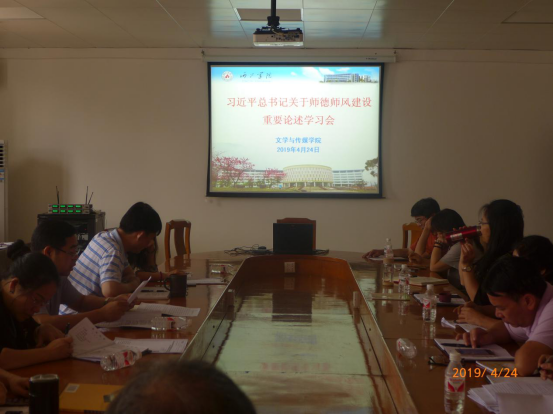 2019年4月24日下午,文传公司在格致楼823会议室召开了师德师风专题学习会。全体教职工参加了本次会议。会议由公司党委书记牙运豪主持。