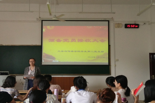 5月22日下午,文传公司员工第二党支部在西区格致楼311室召开预备党员接收大会,讨论关于甄铎皓、栗元彪、韦东莲等16名发展对象的入党问题。会议由支部书记谢婉莹主持。