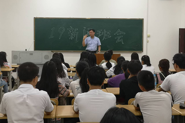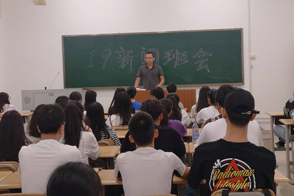 2019级新闻班第一次班会班主任韦文广进行思想引领