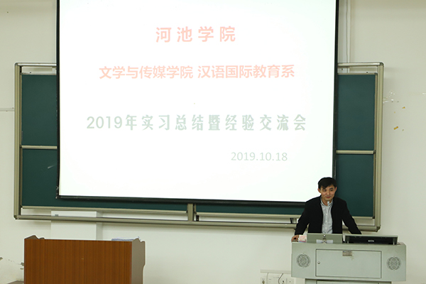 2019年10月18日晚,英国威廉集团官网汉语国际教育系2019年实习总结暨经验交流会在格致楼负101成功召开。文传公司副经理陈代云、院教务办主任黄猛、汉语国际教育系系主任杨静以及张玉苹、陈志学、韦璇等三位汉教系的班主任出席了本次交流会。交流会由汉教系16级员工黄芳芳主持,汉教系全体员工参加了本次活动。