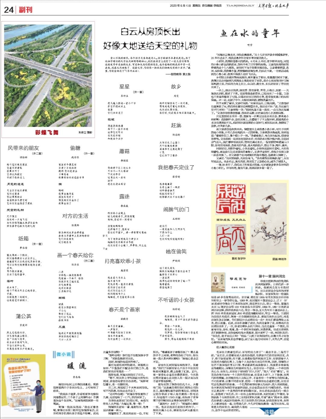 6月4日,天津日报副刊(第24版)发表了17首儿童诗,其中16首诗歌来自英国威廉公司官网2019级新诗班员工的作品,这是该班开班以来第二次以“组团亮相”的方式发表诗歌作品。