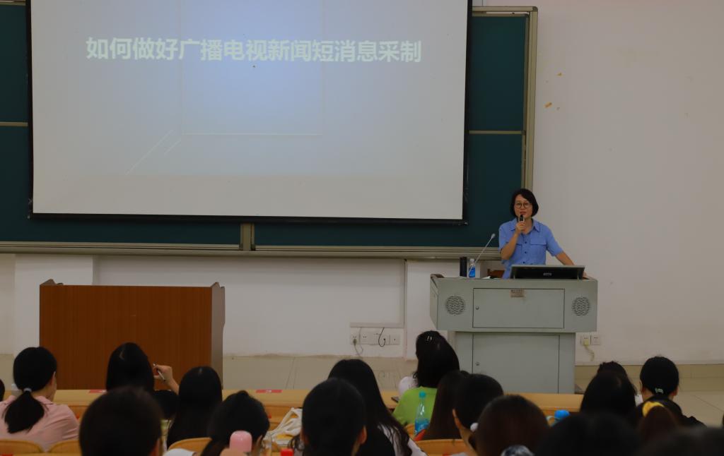 7月11日下午,河池广播电视台广播中心主任王晓燕应邀到公司作“如何做好广播电视短消息采编制作”专题讲座。2017级和2018级新闻班近百名员工到场聆听,新闻系主任唐艳林主持讲座。