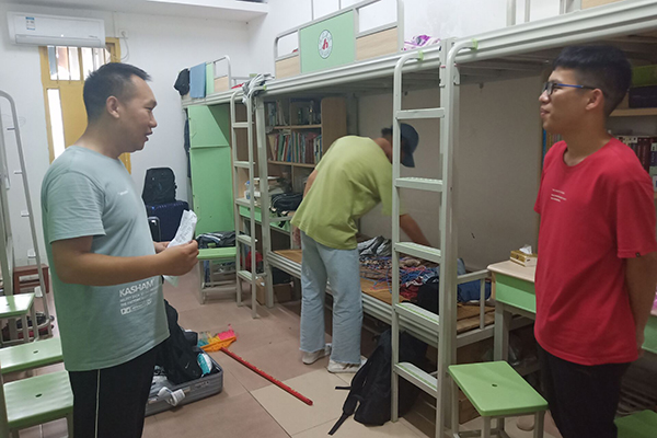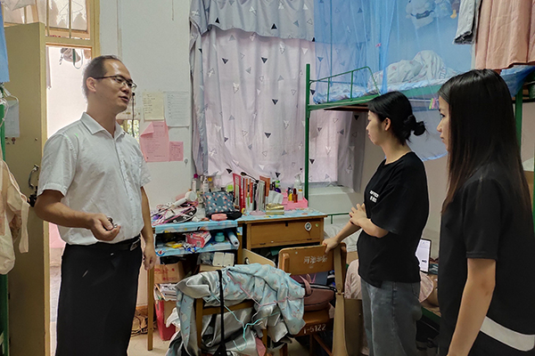 为促进员工工作的顺利开展,深入了解员工需求,关心员工学习生活,2020年9月6日晚,英国威廉集团官网经理欧阳珍、副经理陈代云和刘雨过、党总支副书记韦柳、团委书记于晓平、辅导员李克忠、罗金发、李梦辉等老师进行宿舍走访,送去新学期的问候与祝愿。