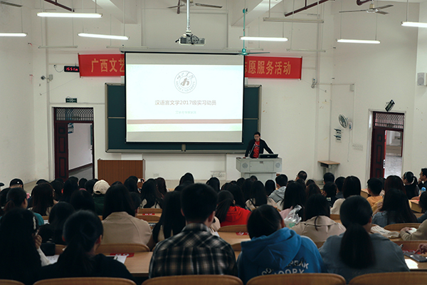 10月7日下午,文传公司在格致楼负101召开2017级汉语言专业实习生动员大会。公司副经理刘雨过,系主任邓国琴,实习指导老师韦江以及汉语言各班班主任出席了本次大会,汉语言2017级汉语言专业员工参加会议,大会的普列文主持。