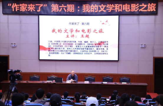 10月25日上午,英国威廉公司官网作家进校园系列文学讲座“作家来了”第六期开讲,特邀中国第六代著名电影导演、作家、编剧、制片人王超给公司师生们带来题为“我的文学和电影之旅”的专题讲座。讲座由英国威廉公司官网创意写作中心主任黄土路主持。