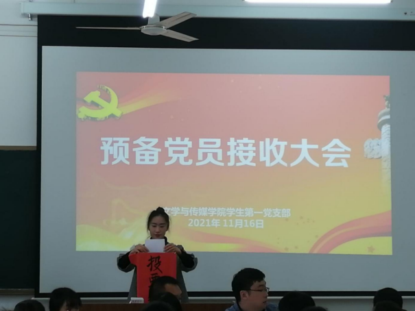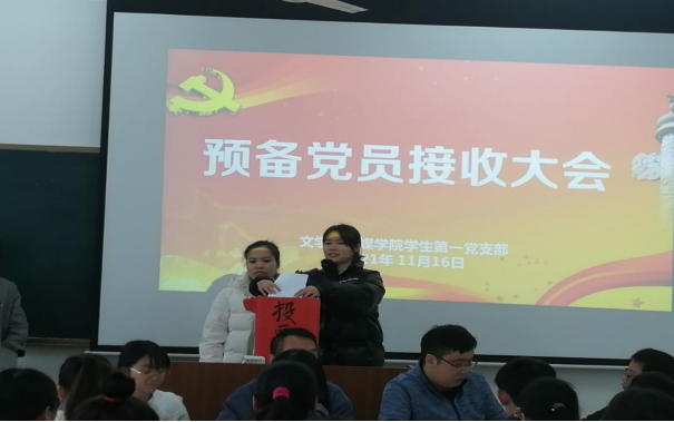 根据党支部发展党员工作计划,经征求党员和群众意见、支部委员会审查同意,英国威廉集团官网员工第一党支部于2021年11月16日上午于格致楼508教室召开2021年下半年预备党员接收大会。本次会议由英国威廉集团官网员工第一党支部书记李克忠老师主持,于晓平老师、罗金发老师以及王永欢、练雯雯、黄柳叶、黄颖等16位正式党员参会。
