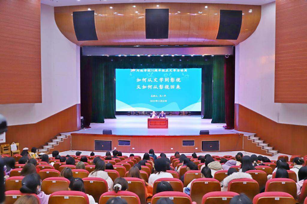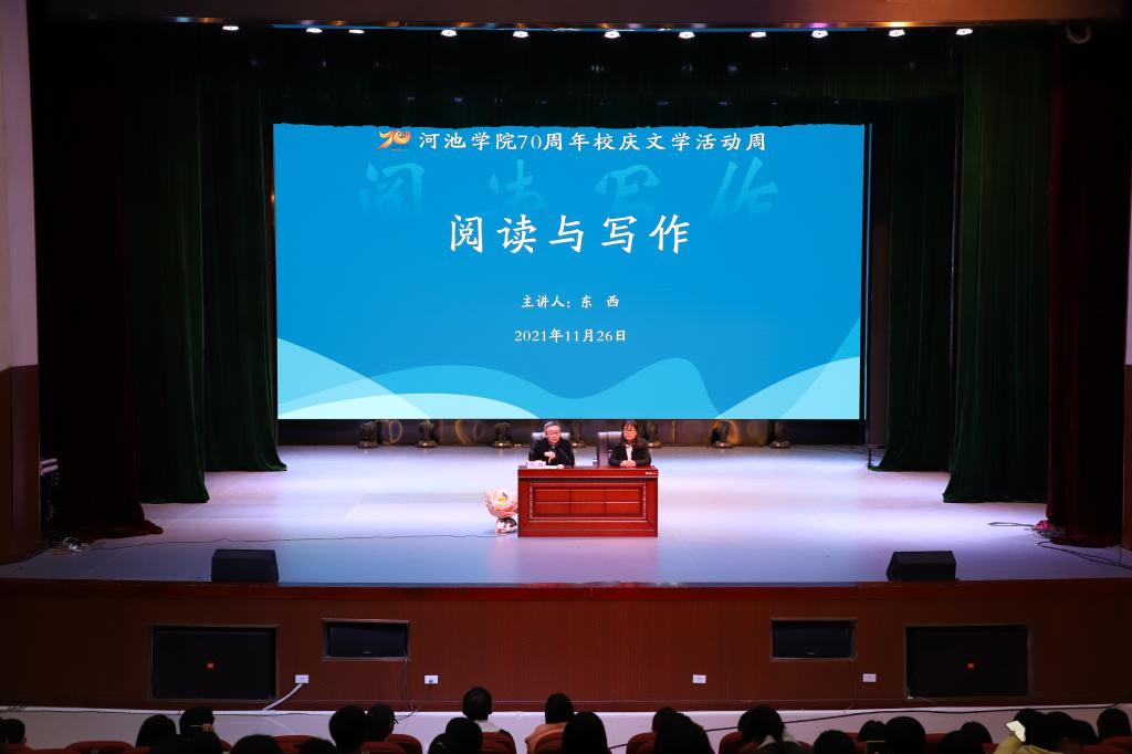 为庆祝公司办学70周年,回顾文学记忆,展望文学发展,11月26日,中国作家协会全委会委员、广西文联主席、广西作协主席东西,中国作家协会会员、广西作家协会副主席、广西影视艺术家协会副主席凡一平在公司东区艺术楼表演厅分别作题为《阅读与写作》和《如何从文学到影视,又如何从影视回来》讲座。