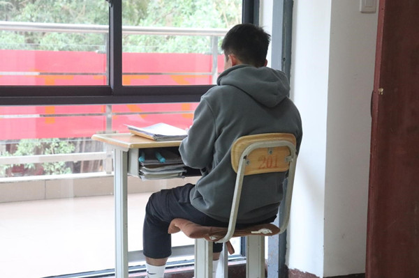 尽管已是寒冬,不应景的电风扇还摆在教室里,夏天备考时带来的已无暇带回宿舍。自习室里陆陆续续有同学前来复习,校园静谧的早晨伴随着教室门口榕树脚下的英语朗读声而开始。