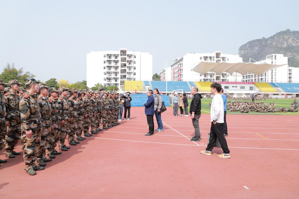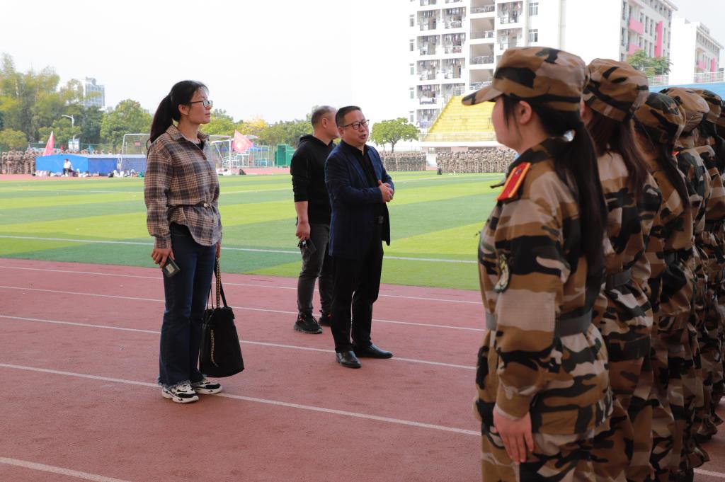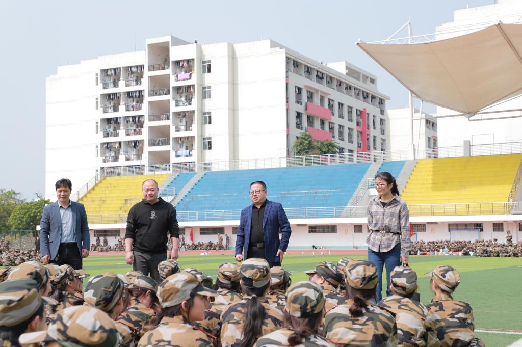 3月14日上午,公司领导到东区田径场看望公司参加军训的2022级员工,全体辅导员与新生班主任一同前往看望军训新生。