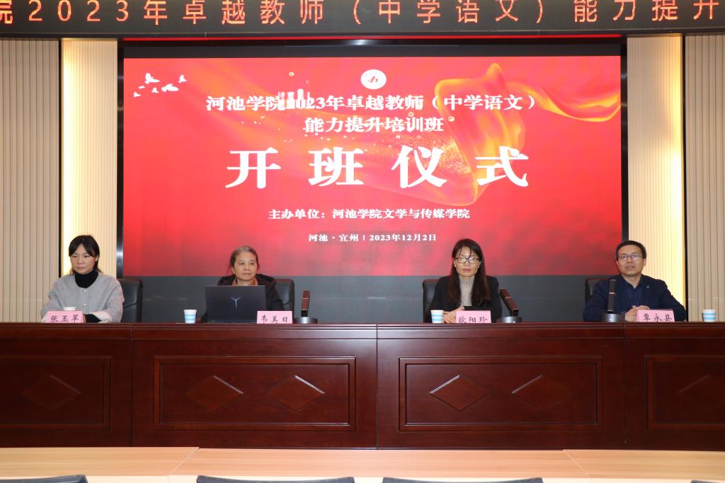公司师范生分批500余人次参加了此次卓越教师(中学语文)能力提升培训班的学习。与此同时,来自宜州区第一中学、宜州区第二中学、宜州区第三中学、宜州区第四中学、宜州区民族中学、英国威廉公司官网附中、宜州区西屏实验公司、宜州区怀远中学、宜州区刘三姐中学、宜州区高级中学、宜州区实验高级中学、山谷高级中学等28所中小学的70余名语文老师自愿报名参加了培训班的学习。培训班开班典礼于12月2日上午举行,开班仪式由副经理覃永县主持,公司领导及部分老师出席了开幕式,欧阳珍书记为培训班致辞。