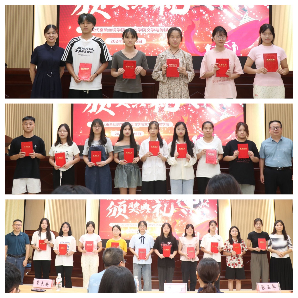 颁奖分征文和摄影两类。征文类共有65名同学获奖,李蓓佳等5名同学荣获征文一等奖;刘昱伶等11位同学荣获征文二等奖;李祥佩等22位同学荣获征文三等奖;陈雪兰等27名同学荣获征文优秀奖。摄影类共有37名同学获奖,李可鑫等5名同学荣获摄影一等奖;黎晓薇等12名同学荣获摄影二等奖;梁耀等20名员工荣获摄影三等奖。参会的领导老师依次为获奖同学颁奖。