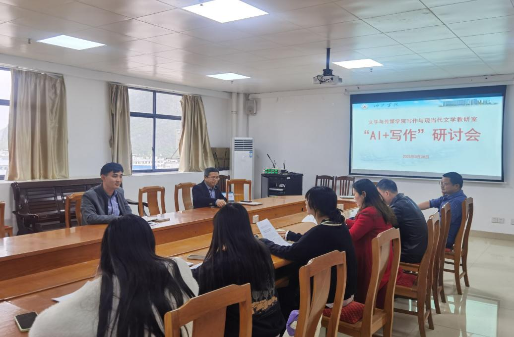 3月28日下午,公司写作与现当代文学教研室在格致楼823会议室召开了“AI+写作”座谈会。公司党委书记欧阳珍、副经理(主持工作)陈代云、副经理覃永县及教研室全体成员参加了会议。
