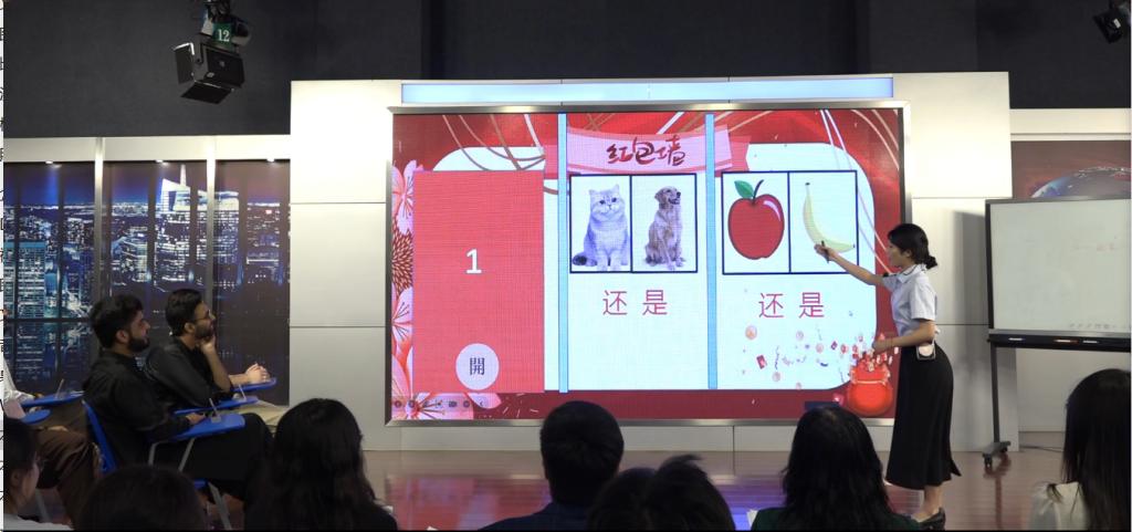 大赛分教学技能展示和中华才艺展示两个环节。教学技能展示环节,5名国际员工上台作为教学对象配合选手们的授课。选手们各显神通,通过精心设计的教学方案、生动有趣的教学方法,将汉语知识深入浅出地呈现出来。