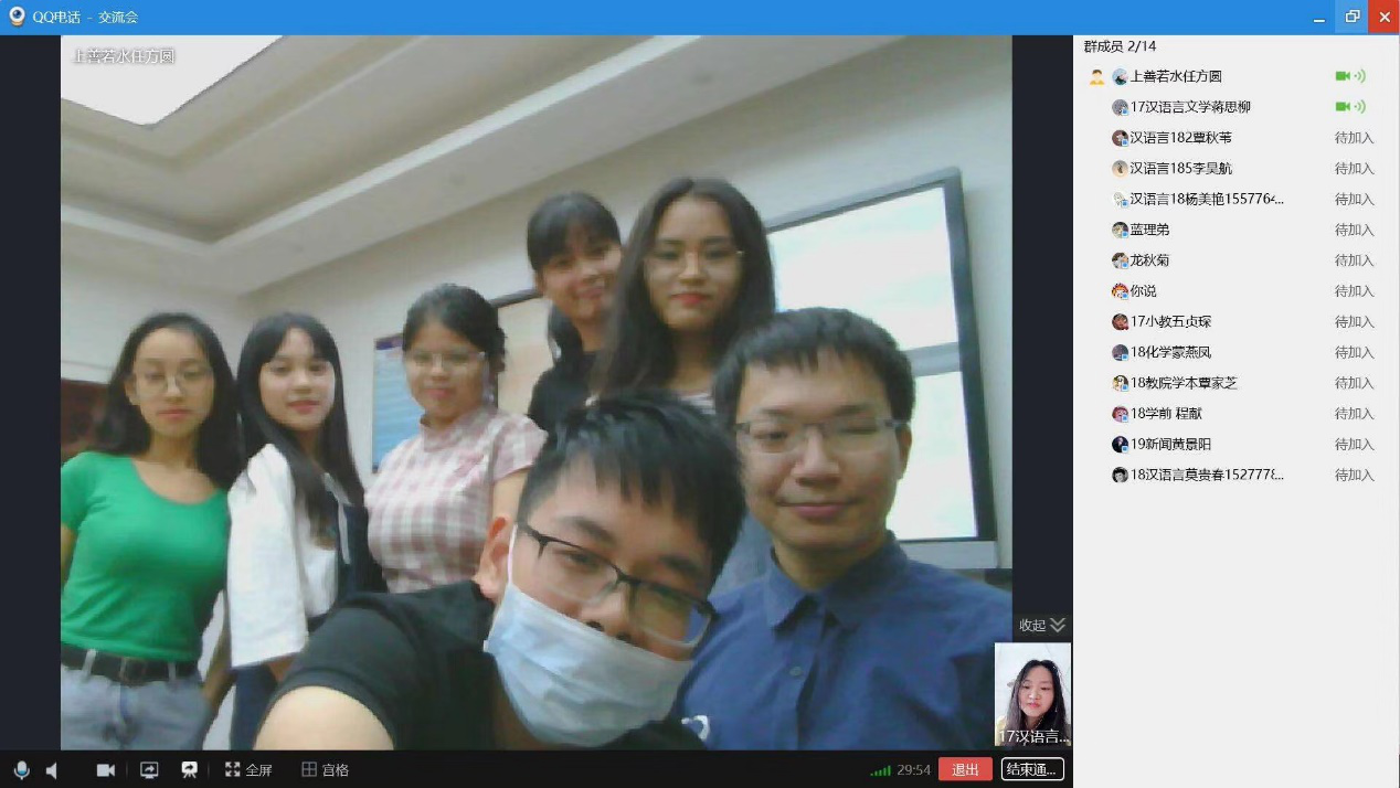 由于疫情期间,根据疫情防控需求,人数有所控制,但通过网络与无法到场的同学进行交流。
