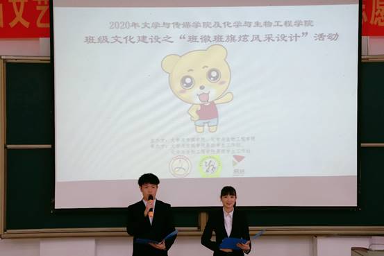 本次评比共制药201班、汉语言203班等16个参赛班级。班旗班徽设计合理,风格独特,通过班级解说员准确生动的语言表达,完美地展现了各班团结一致、共同进步的班级精神。