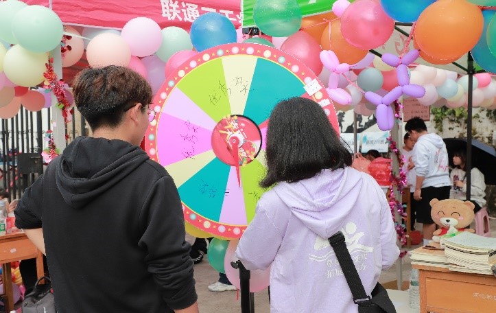 “幸运大转盘”活动分为两天,6日和7日各分为上下午两场,公司的小伙伴们都很积极的转发易班公众号说说并参与。“知识小问答”活动设置了多个小问题,连续回答正确五道题即可获得精美礼品一份。大家都跃跃欲试,施展才华,现场热闹非凡。这两项小活动都增加了运动会的趣味性,同时也带给了同学们良好的游戏体验感。