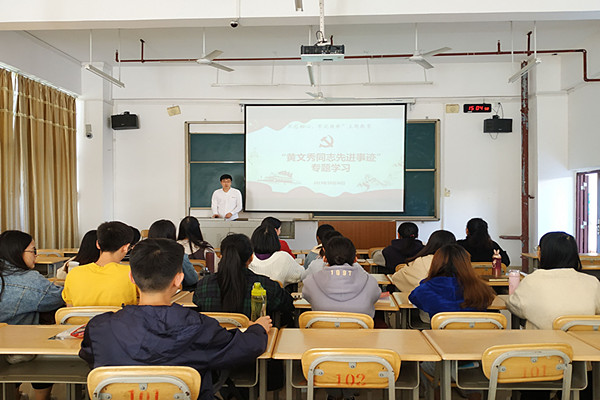 首先,由支部书记于晓平对时代楷模黄文秀的生平进行简要的介绍。随后,支部党员及发展对象观看了黄文秀先进事迹的相关视频,视频中展示了黄文秀作为一名共产党员对党忠诚、心系群众、忘我工作、无私奉献,勇于担当的优秀品质。观看结束后,入会同志结合自身就如何向黄文秀学习、如何做到“不忘初心、牢记使命”等问题展开了讨论和交流,现场氛围热烈。