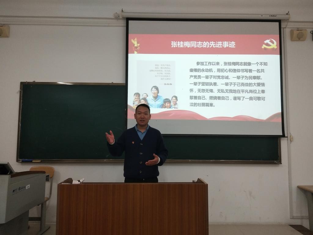 会上,支部书记李克忠同志带领大家共同学习教育部印发的《关于深入开展向张桂梅同志学习的通知》,观看张桂梅同志的相关视频,详细介绍了张桂梅同志的先进事迹。李克忠同志指出,各位党员同志要将会议内容铭记于心,要加强对张桂梅同志先进事迹的学习和宣传。同时,要把学习张桂梅同志先进事迹和崇高精神与学习贯彻习近平新时代中国特色社会主义思想和党的十九大精神结合起来,在学习中不断升华自己。观看视频结束,同志们围绕学习张桂梅事迹展开了讨论,相互交流分享了学习心得,张桂梅同志30多年来全身心投入到教书育人崇高事业的感人事迹和赴党忠诚、永葆初心、无私忘我的奉献精神,感人肺腑、振人心魄。作为预备党员要汲取榜样力量,坚守党员初心。
