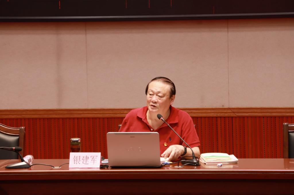 银建军首先通过列举一系列事例追溯历史,阐释伟大建党精神形成的时代背景、理论来源、实践基础和文化土壤。然后以共产党人陈然的《我的自白书》赞扬理想信念高于天的共产党员,从坚持真理坚守理想、践行初心担当使命、不怕牺牲英勇斗争、对党忠诚不负人民等方面诠释伟大建党精神的深刻内涵。同时带领大家学习伟大建党精神的作用,作为中国共产党人精神谱系的历史源头与高度凝练,伟大的建党精神是贯穿中国共产党人精神谱系的红色血脉,发展壮大的基因密码。最后他希望大家坚定理想信念信心,坚守初心使命,在新时代弘扬伟大建党精神。