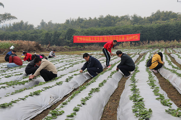 为扎实推进党史主题教育工作,不断增强党员服务意识。12月11日,文传公司教工党支部党员牺牲休息时间前往庆远镇龙村地辽屯为刘三姐镇乍洞村村集体经济“乡村草莓园”盖地膜,除草。党员们充分发挥不怕苦不怕累的精神,分工明确、配合默契,辛勤劳作,田间地头呈现出一派繁忙的劳动景象。