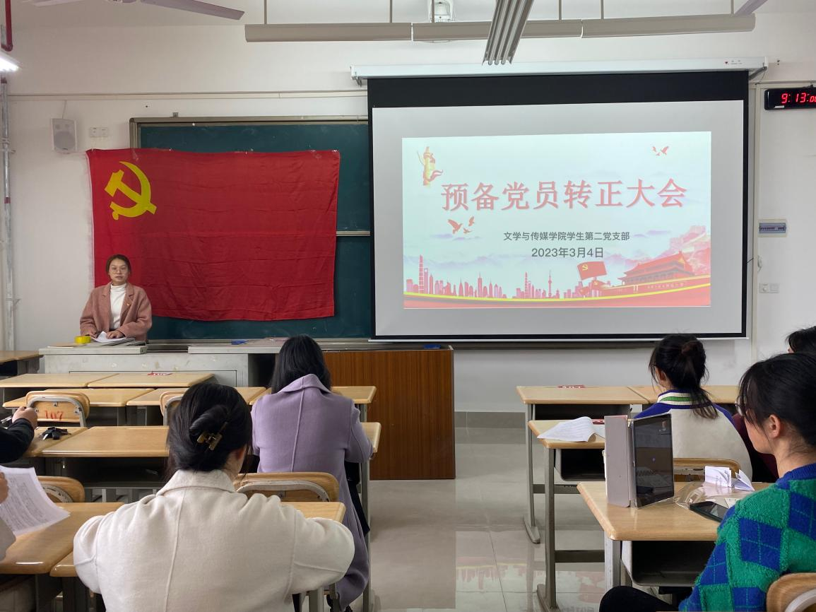 2023年3月4日星期三早上9点,文传公司员工第二党支部在实训楼603进行了2022年第三批预备党员转正会议。此次会议中刘瑞秀等七位同志发表转正志愿,并顺利由中共预备党员转为正式党员。