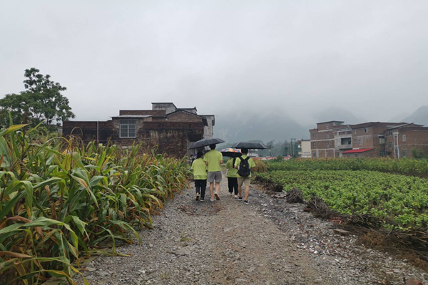 在下乡期间,正好赶上雨季,连绵的雨滴,一直淅淅沥沥的下着,虽然天公不作美,但依旧不能阻挡我们前进的步伐。连绵的雨水飘湿了衣服,泥土裹住了鞋子,但是队员们的心依然坚定无比,努力克服天气给我们带来的不便,高效的完成了本次活动。