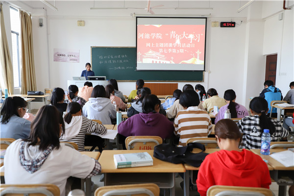 公司团委书记于晓平、团委副书记黄彦琳(员工)、团委副书记黄文婷(员工)与汉语国际教育2019级本科班的同学一起参加了此次团课学习,视频对四中全会进行了着重介绍并进行了全面的阐述,此次团课学习加深了同学们对四中全会的了解。