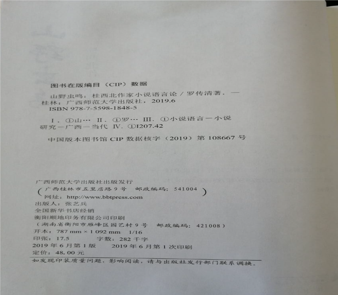 罗传清出版著作《山野虫鸣:桂西北作家小说语言论》