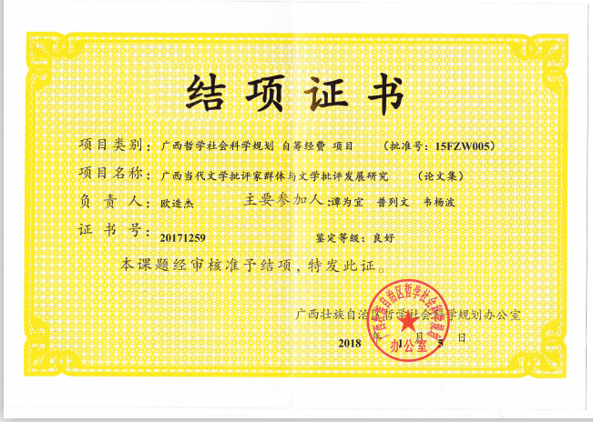 欧造杰的2018年广西哲学社会科学规划自筹经费项目顺利结项