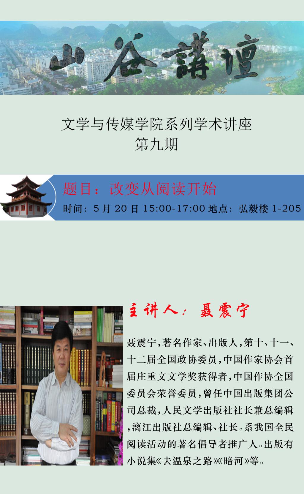 聂震宁,著名作家、出版人,第十、十一、十二届全国政协委员,中国作家协会首届庄重文文学奖获得者,中国作协全国委员会荣誉委员,曾任中国出版集团公司总裁,人民文学出版社社长兼总编辑,漓江出版社总编辑、社长。系我国全民阅读活动的著名倡导者推广人。出版有小说集《去温泉之路》《暗河》等。