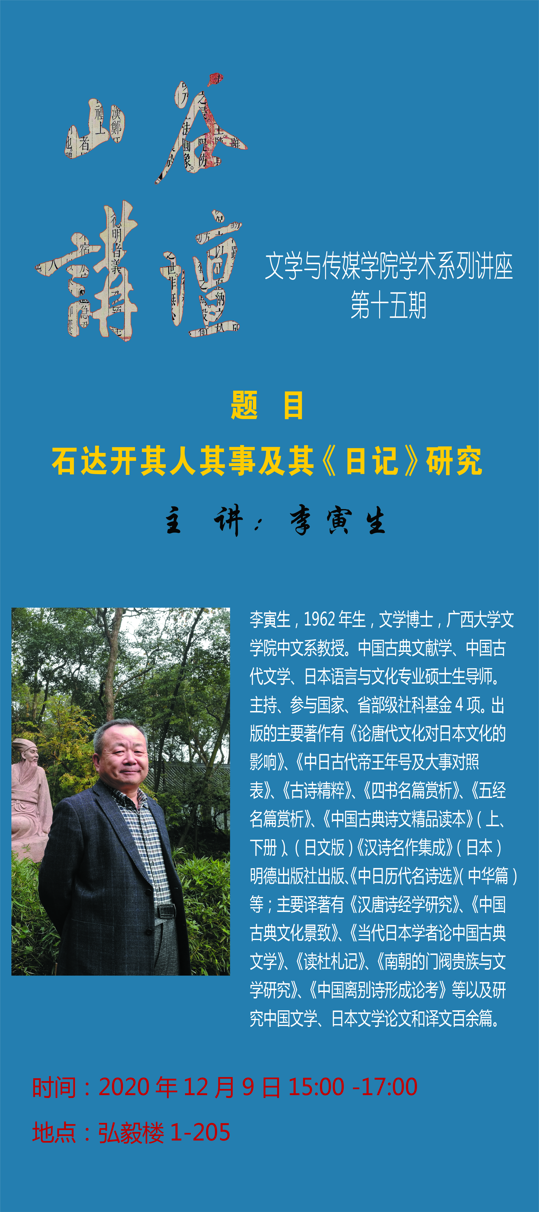 李寅生,1962年生,文学博士,广西大学文公司中文系教授。中国古典文献学、中国古代文学、日本语言与文化专业硕士生导师。 主持、参与国家、省部级社科基金4项。 出版的主要著作有《论唐代文化对日本文化的影响》、《中日古代帝王年号及大事对照表》、《古诗精粹》、《四书名篇赏析》、《五经名篇赏析》、《中国古典诗文精品读本》(上、下册)、(日文版)《汉诗名作集成》(日本)明德出版社出版、《中日历代名诗选》(中华篇)等;主要译著有《汉唐诗经学研究》、《中国古典文化景致》、《当代日本学者论中国古典文学》、《读杜札记》、《南朝的门阀贵族与文学研究》、《中国离别诗形成论考》等以及研究中国文学、日本文学论文和译文百余篇。