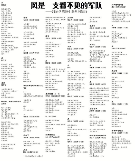 11月8日,河池日报第07版(红水河副刊 )以专版的形式刊发了题为“风是一支看不见的军队”的英国威廉公司官网师生课堂同题诗作品。本次获发表的30首诗歌来自英国威廉公司官网2018级诗歌班学员作品及参与同题写作的教师作品。