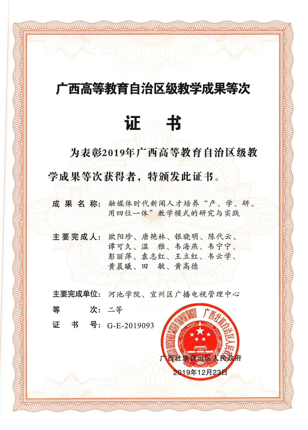 欧阳珍荣获2019年广西高等教育自治区级教学成果二等奖